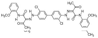 永固黄2G 一.产品名称 商品名称:永固黄2G 国际索引号:C.I. Pigment Yellow 17 CAS登记号:4531-49-1 欧共体登记号:224-867-1 产品系列:双偶氮 二.物化和牢度性能 分子量:689.54 分子式:C34H30Cl2N6O6 PH值:6.0-7.0 比重:1.6 吸油量(ml/100g):35-45 耐光性:5 耐热性:180℃ 耐水性:5 耐油性:4 耐酸性:5 耐碱性:5 三.应用领域 色光:亮绿光黄,透明 主要用于胶印墨,也可用于塑料。